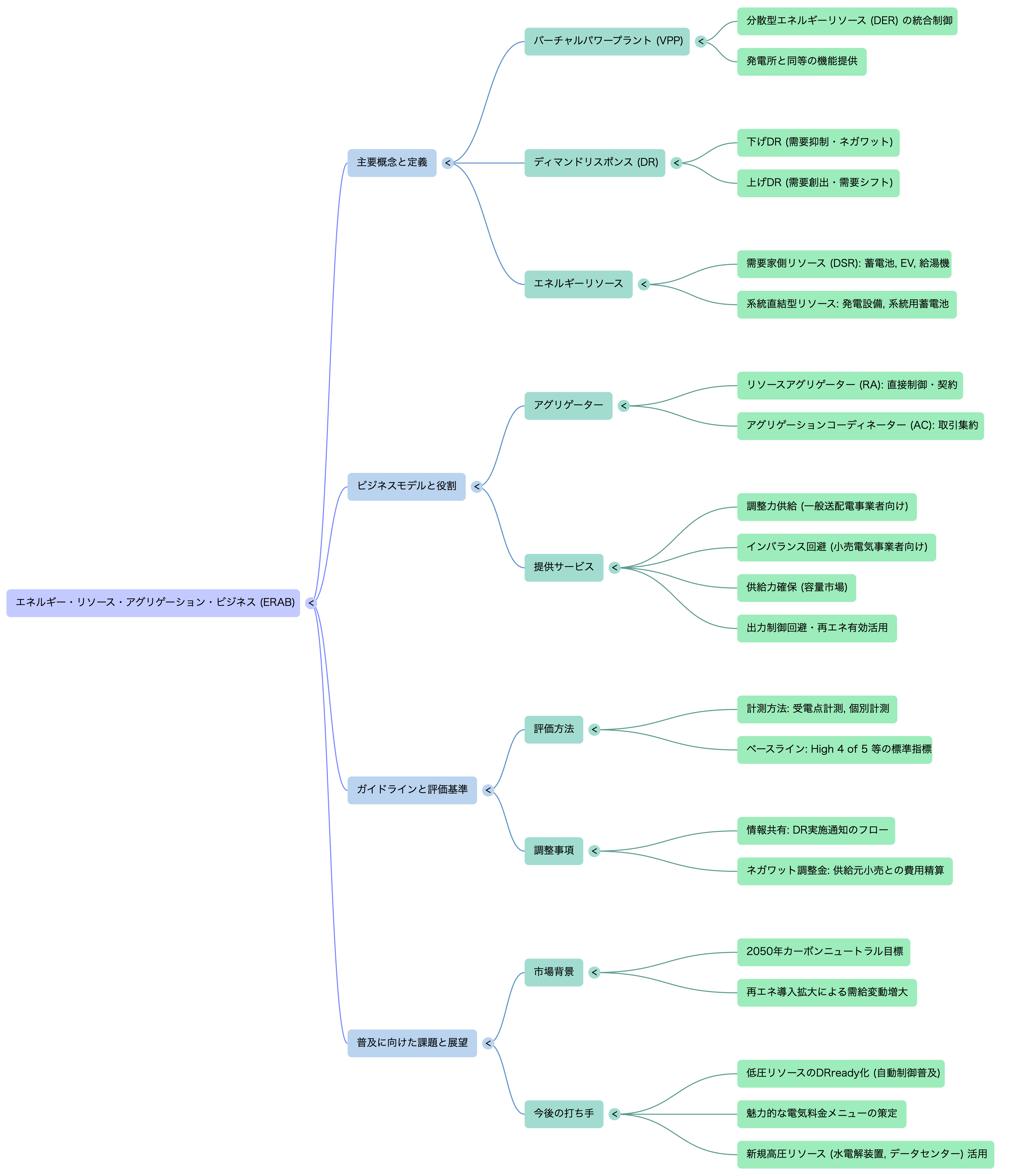 下のマインドマップは、このERABを起点に全体像を俯瞰したものです。主要概念と定義、ビジネスモデルと役割、ガイドラインと評価基準、そして普及に向けた課題と展望まで — 本記事ではこれらの要素を基礎編・深掘り編の順で解きほぐしていきます。